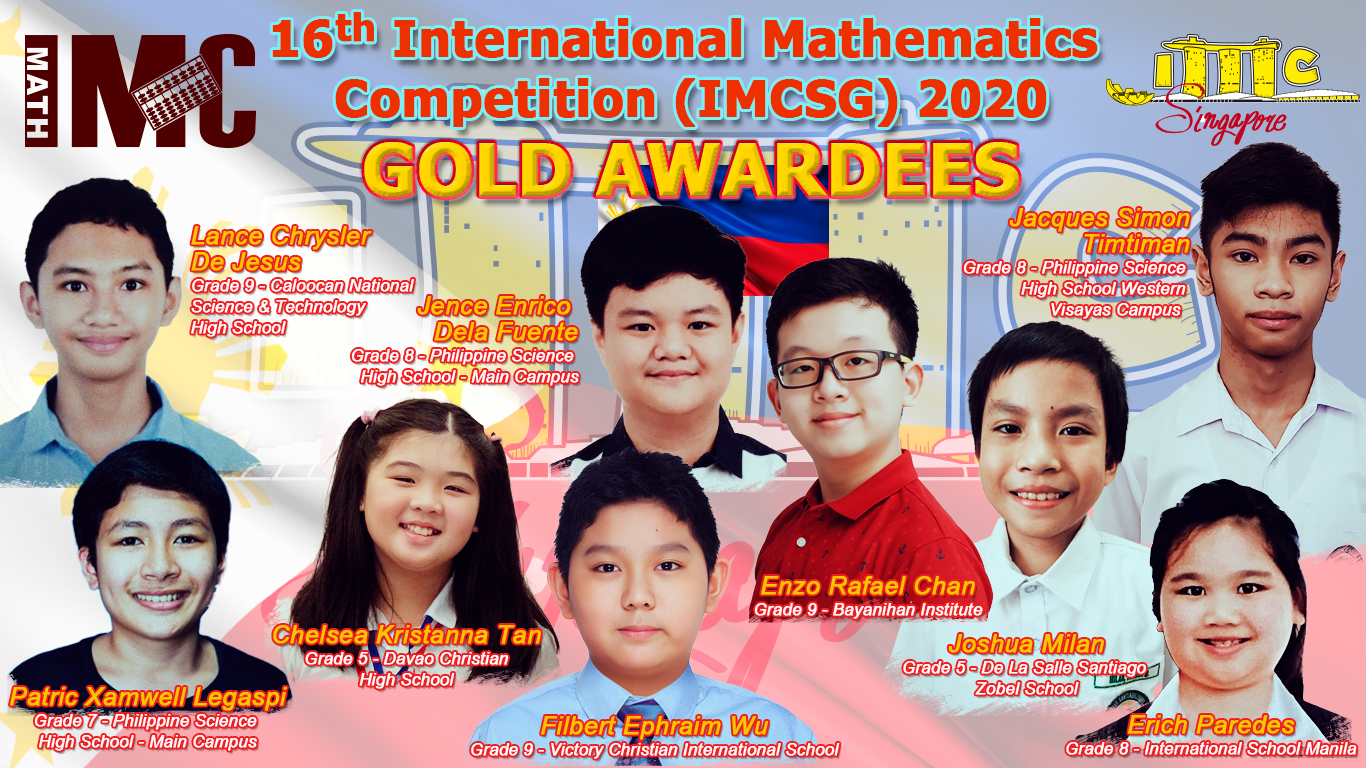 Another winning streak from the Philippines is no luck but a tangible proof of the Filipino whiz kids’ pure grit, tenacity and persistent style that paved the way for their resounding victory in 16th International Mathematics Competition – Singapore held online last September 5, 2020.